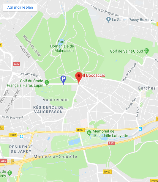 | Niché sur les hauteurs de la ville au 43 Avenue de la Celle Saint-Cloud, Il Boccaccio est une institution depuis 1979. |